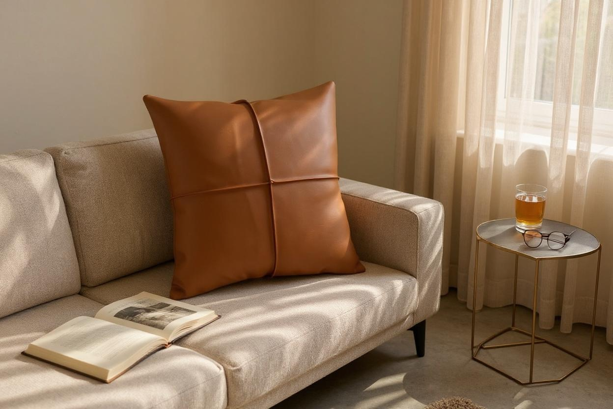 Checkered Pattern Smart Stitch Vegan Leather Cushion